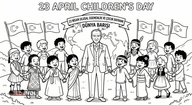 23 Nisan Ata ve Dünya Çocukları Boyama Sayfası