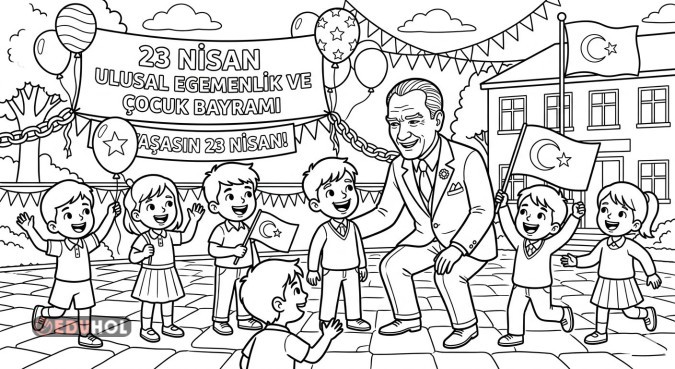 23 Nisan Atatürk ve Çocuklar Boyama Sayfası