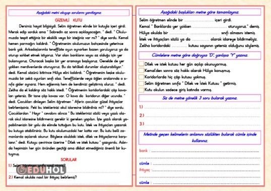 OKUMA ANLAMA METNİ ( İhtiyaç ve istekleri demokratik yollarla ifade )