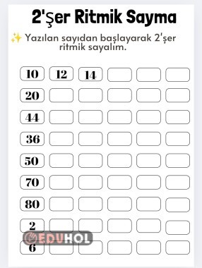 İkişer ritmik sayma çalışması 2 sayfa