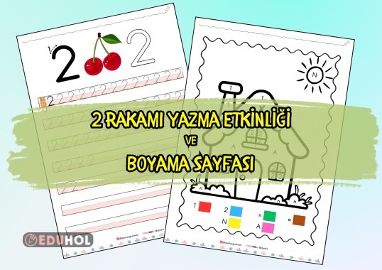 2 rakamının yazılışını pekiştirmek için bir sayfalık etkinlik hazırladım. İkinci sayfada öğrenilen harf ve rakamlardan oluşan bir boyama etkinliği bulunuyor.