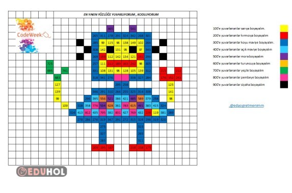 Matematikte en yakın yüzlüğe yuvarlama kazanımını pekiştirmek ve Codeweek için de kullanabileceğiniz bir çalışma.