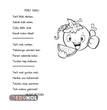 Kafiyeli , basit bir dille yazılmış 1. sınıftan 3. sınıfa kadar tüm öğrencilerin severek okuyup, günün anlam ve önemini kavramasını sağlayabileceği, resmini istediği renklere boyayabileceği bir şiir çalışması