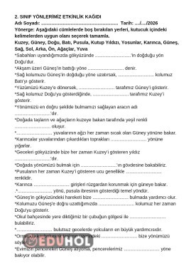 Doğada yön bulma çalışma kağıdı