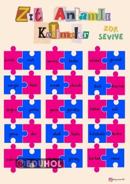 Zıt anlamlı kelimeler oyunu _zor seviye