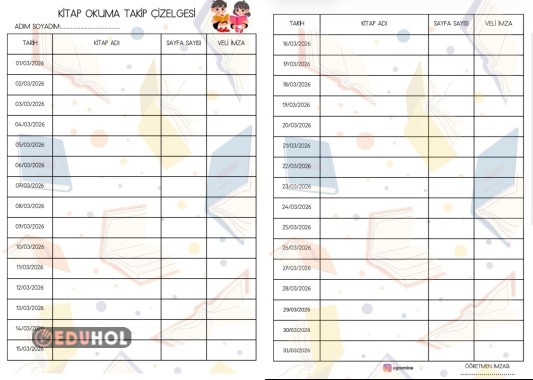 Mart ayı kitap okuma çizelgesi renkli ve siyah beyaz(arka plan resmi yok) 4 SAYFA . Fatdalı olması dileğiyle. Beğenip kaydetmeyi unutmayalım. Teşekkürler 🥰💃