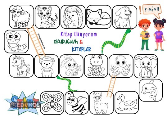 Okuma tablosunu eğlenceye çevirerek öğrenci önce zar atar. Çıkan sayı kadar ilerler ve gelen resmi boyar. Her boyadığı resim bir bitirdiği kitaba işaret eder. Eğer atılan zar yılanlara ya da merdivene gelirse diğer taraftaki nesneyi boyar.
