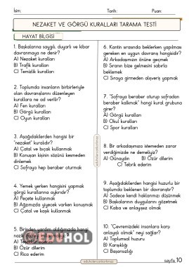 2. Sınıf hayat bilgisi nezaket ve görgü kuralları 10 soruluk test