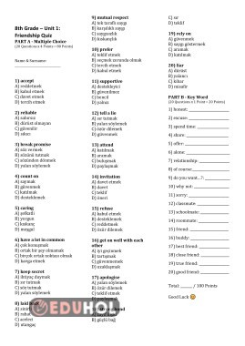 This quiz has been prepared for 8th grade students to assess vocabulary and key expressions from Unit 1 (Friendship).