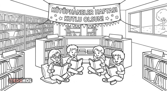 Kütüphaneler Haftası Pano İçin Dev Boyama Sayfaları