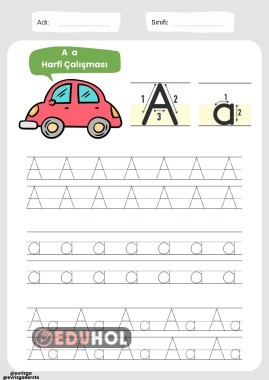 A sesi yazma çalışması, 2 sayfa. Büyük ve Küçük harf birlikte.