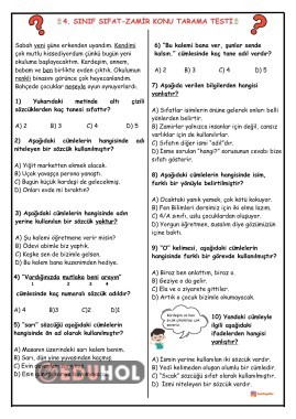 4. SINIF SIFAT-ZAMİR KONU TARAMA TESTİ