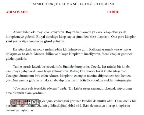 3. SINIF TÜRKÇE 5. TEMA OKUMA SÜREÇ DEĞERLENDİRME