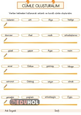 1.Sınıf Türkçe Dersi Anlamlı ve Kurallı Cümle Oluşturma Çalışması