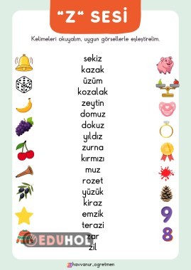 “Z” SESİ OKU-EŞLEŞTİR ETKİNLİĞİ