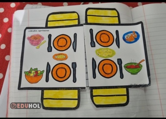 Açılır kapanır şekilde yapıştırıyoruz.Orta kısma görgü kurallarını yazdıriyoruz.Küçük resimleri boyatabiliriz.
