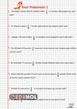Kesir Problemleri 2 Defter Çalışması
