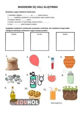 Maddenin Halleri Alıştırması Fen Bilimleri