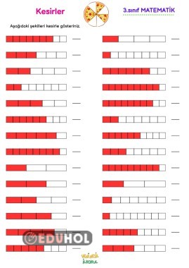 Şekilleri verilen kesirlerin yazılışlarını öğretirken kullanabileceğiniz bir etkinlik Etiketler: kesirler