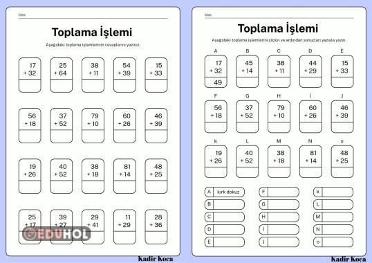 Toplama İşlemi Eldeli ve Eldesiz Çalışma