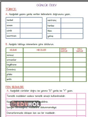 Türkçe, Fen Bilimleri ve Matematik derslerinden hazırlanmıştır.