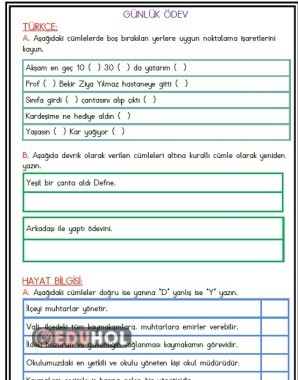 Türkçe, Hayat Bilgisi ve Matematik derslerinden hazırlanmıştır.