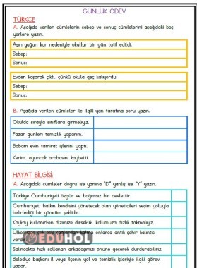 Türkçe, Hayat Bilgisi ve Matematik derslerinden hazırlanmıştır.