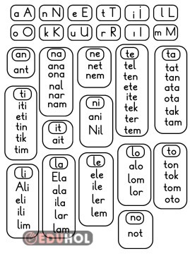 Harfleri öğrenmiş ancak okuma ve dikteyi kavrayamamış öğrenciler için. Bu sayfa ile hem okuma yaptırıyorum hem de dikte yaptırıyorum. Önce Kutuların içindeki başlık okunacak ya da yazılacak aşağıdaki kelimeler zaten sadece o hece ile ilgili. Ben çok ...