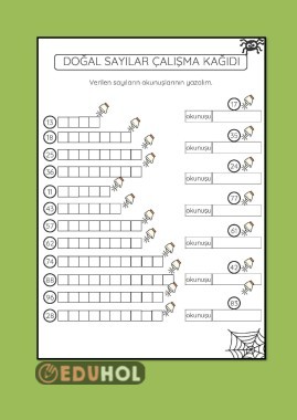 DOĞAL SAYILARIN OKUNUŞU VE YAZILIŞI ÇALIŞMA KAĞIDI