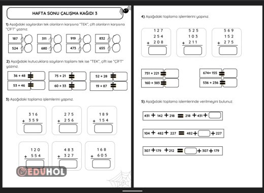 HAFTA SONU CALISMA KAGIDI MATEMAT'K