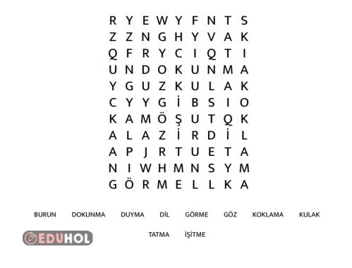 3.SINIF FEN BİLİMLERİ DUYU ORGANLARI BULMACA