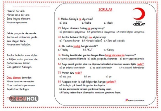 KIZILAY HAFTASI KONULU ŞİİR VE METİN İLE İLGİLİ SORULAR...