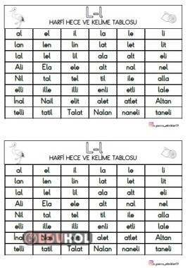 L Harfi ile yazılabilecek hece, kelime ve isimlerin yer aldığı tablo. Deftere yapıştırarak da kullanabilirsiniz. DİKTE yaptırırken da kullanabilirsiniz. 1 SAYFA 2 ÖĞRENCİ İÇİNDİR.