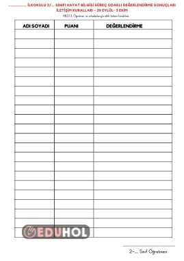 Sınıf sayısını arttırıp azaltmak için kolaylık olsun diye word dosyası halinde yükledim. üzerinde düzenleme yapabilirsiniz. Değerlendirme sayfamda yüklüdür.