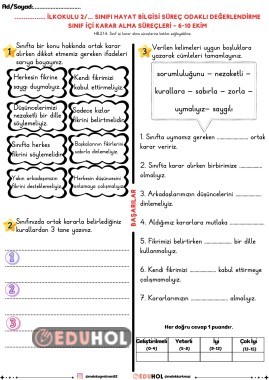 HAYAT BİLGİSİ KARAR ALMA SÜREÇLERİ SÜREÇ ODAKLİ DEGERLENDİRME (6-10 EKİM)