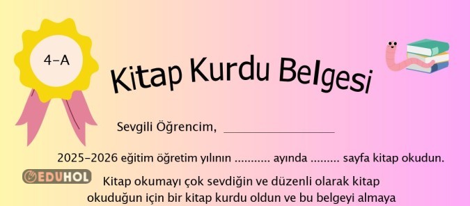 Kız Öğrencilerimiz için kullanabileceğimiz aylık kitap kurdu belgesidir. Kendi okulunuza göre logo ekleyebilir veya logoyu silebilirsiniz. İyi çalışmalar