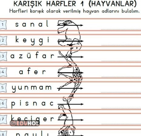 HARFLERİ KARIŞIK OLARAK VERİLMİŞ HAYVANLARI BULMA Etiketler: 1SINIF KELİME OYUNU HAYVANLAR KARIŞIK HARFLER SERBEST ETKİNLİK SINIFİÇİ DERS