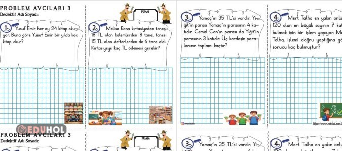 PROBLEM AVCILARI İLE ÖĞRENCİLER BİR DEDEKTİF GİBİ PROBLEMLERİ ÇÖZMEYE ÇALIŞACAKLAR. TOPLAMDA 4 PROBLEM VAR. HER PROBLEM 1 PUAN. BURAYA YÜKLEDİĞİM GÖREV PUANI TABLOLARIYLA AYIN BAŞ DEDEKTİFLERİNİ EN İYİ DEDEKTİFLERİNİ BULAC ...
