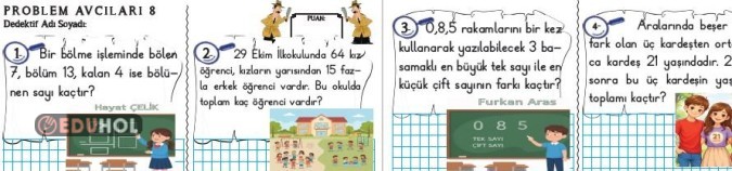 PROBLEM AVCILARI İLE ÖĞRENCİLER BİR DEDEKTİF GİBİ PROBLEMLERİ ÇÖZMEYE ÇALIŞACAKLAR. TOPLAMDA 4 PROBLEM VAR. HER PROBLEM 1 PUAN. BURAYA YÜKLEDİĞİM GÖREV PUANI TABLOLARIYLA AYIN ...