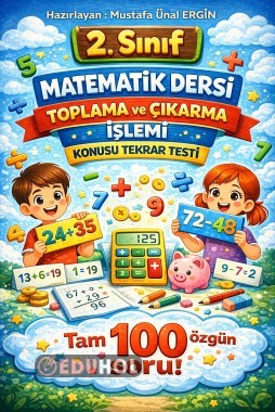 2. Sınıf Matematik Dersi Toplama ve Çıkarma işlemi Konusu Tekrar Testi yaptım. Tam 100 özgün soru hazırladım. Uzun emek verdim. Herkese hayırlı çalışmalar dilerim. Allah'a emanet olun.