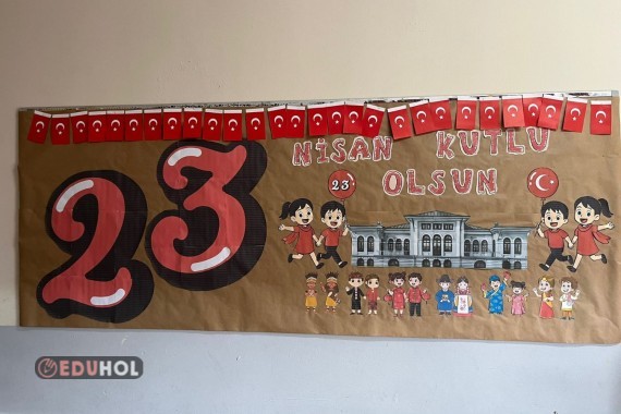 Sınıfınıza renk katacak 23 Nisan Ulusal Egemenlik ve Çocuk Bayramı panosu. (Panomda kullandığım poster hali.)