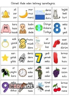 Görsellerin ismini yanda verilen kelimelerin arasından seçerek bulma Etiketler: 1sınıf okumaanlama zsesi