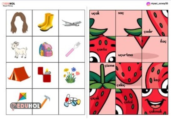 Ç sesi kelimelerinden oluşan yapboz çalışması.