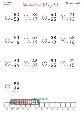 ŞİFRELİ ONLUK BOZARAK ÇIKARMA İŞLEMİ Etiketler: çıkarma işlemi matematik 2sınıf onlukbozarak çıkarmaişlemi