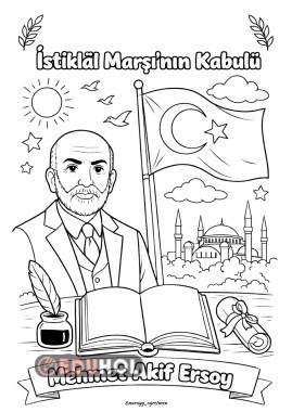 12 Mart İstiklâl Marşı’nın Kabulü boyama sayfaları 2 tane