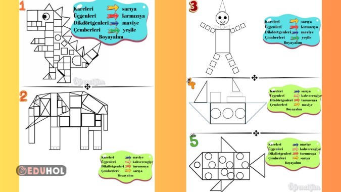 Geometrik Şekil Modelleri (Yönergeye göre boyama)