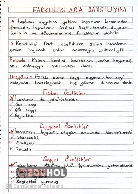 Farklılıklara saygılıyım defter notu empati hoşgörü fiziksel duygusal ve sosyal özellikler