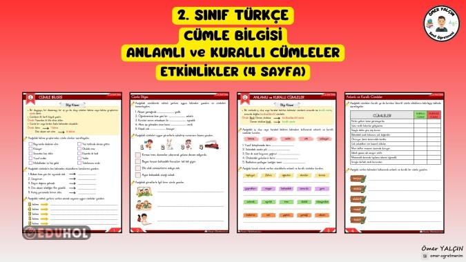 2. SINIF TÜRKÇE CÜMLE BİLGİSİ - ANLAMLI VE KURALLI CÜMLELER ETKİNLİKLER (4 SAYFA)