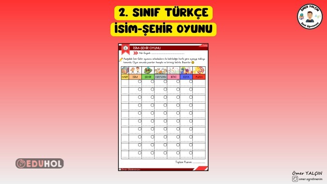 2. Sınıf Türkçe İsim-Şehir Oyunu