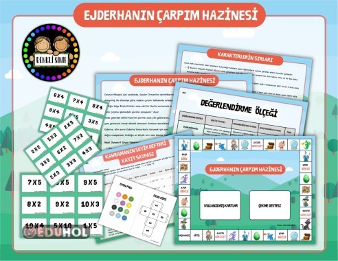 Ejderhanın Çarpım Hazinesi kutu oyunu, 2. sınıf öğrencilerinin çarpma işlemi kazanımlarını oyunlaştırma dinamikleriyle kalıcı, etkili ve interaktif bir şekilde pekiştirmeleri amacıyla tasarlanmıştır.